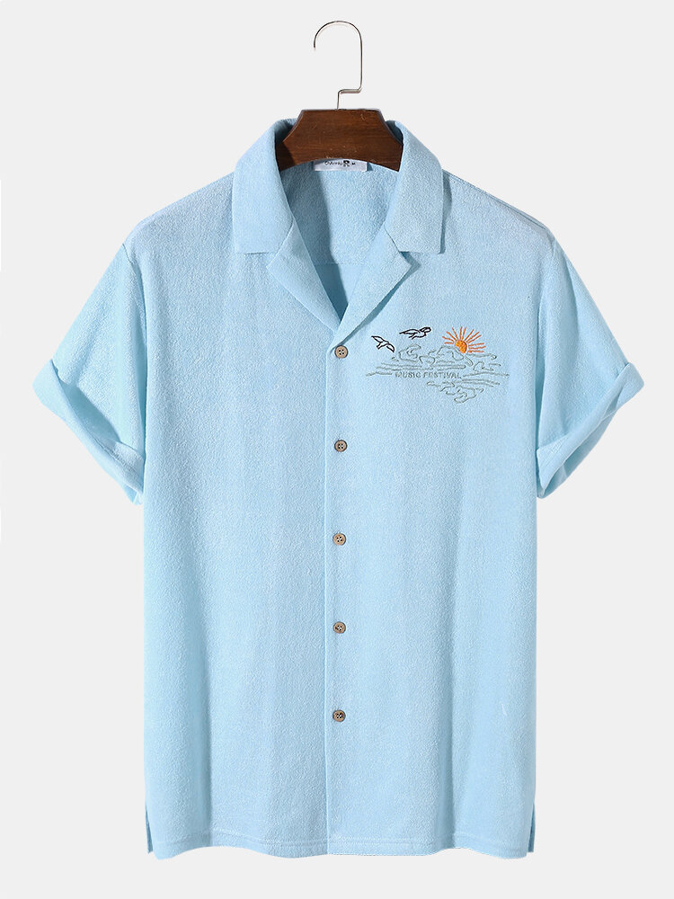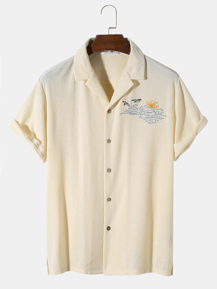 Mens Towelling Embroidery Pattern Casual Shirts – Yellow S