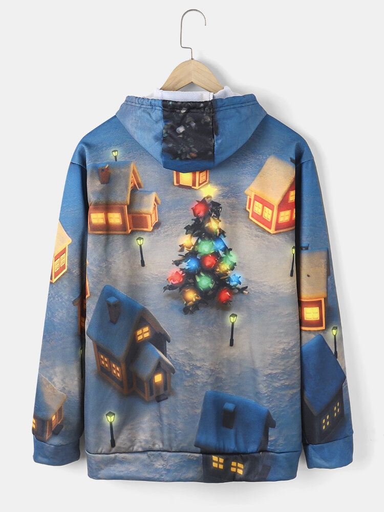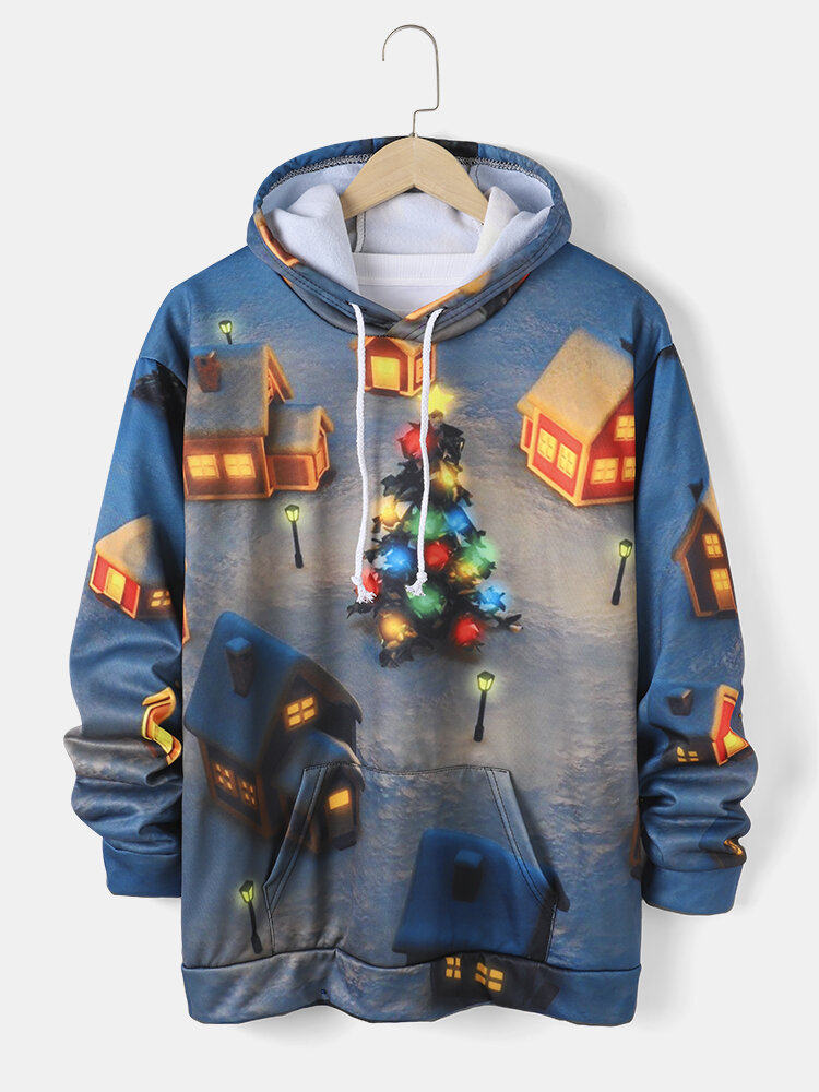 Mens Tree House 3D Printed Casual Kangaroo Pocket Hoodies – Blue M