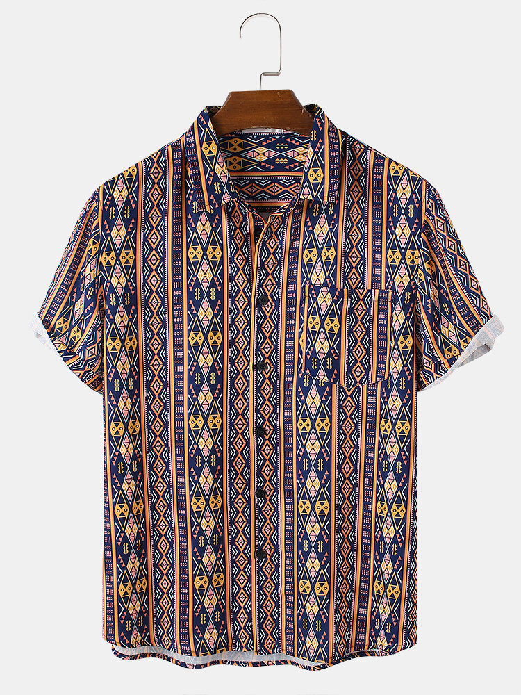 Brand:ChArmkpRDecoration:PocketFit Type:Regular FitMaterial:PolyesterNeckline:LapelPattern Type:GeometricScene:Leisure,Home,CasualSeason:Spring,SummerSize:XXL,L,S,XL,MSleeve:Short SleeveStyle:Vintage,CasualThickness:Regular
