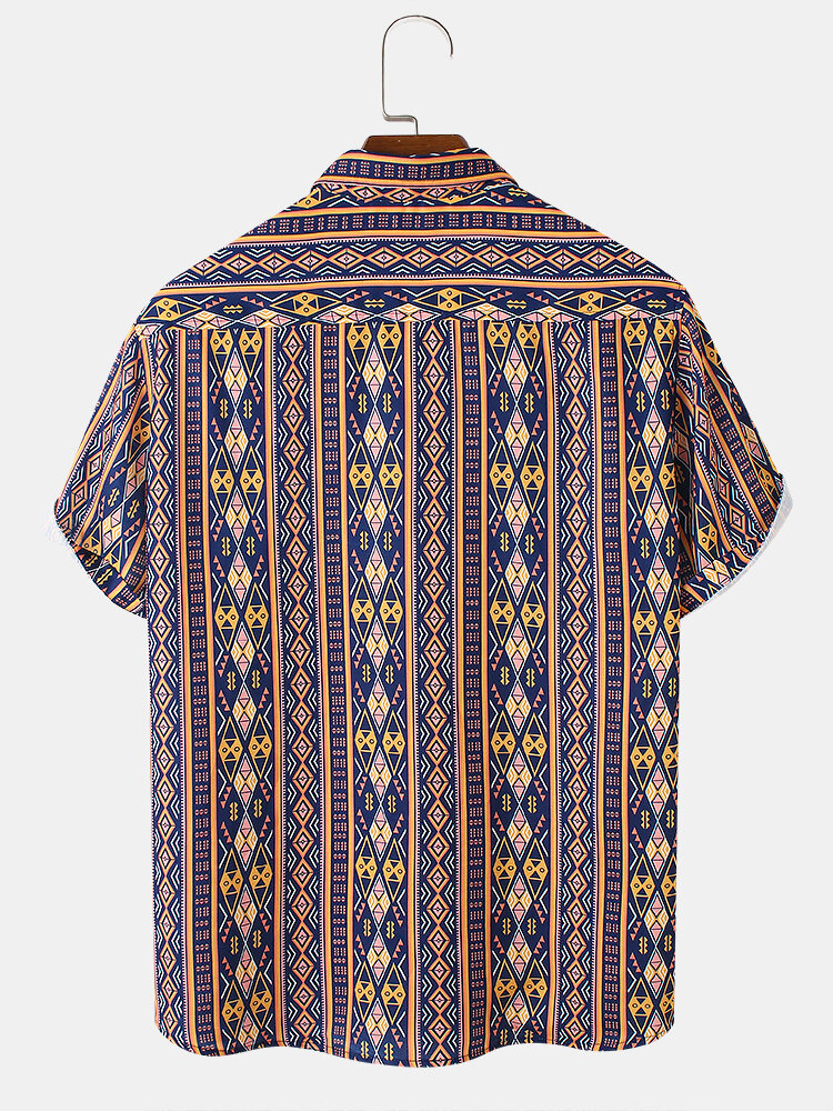 Mens Tribal Geometry Print Short Sleeve Casual Shirts – Blue S