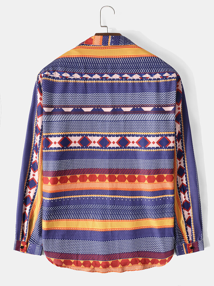Mens Tribal Pattern Ethnic Style Designer Lapel Shirt With Pocket – Yellow S