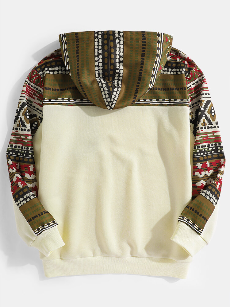 Mens Tribal Print Patchwork Chest Pocket Long Sleeve Design Hoodies – Apricot S