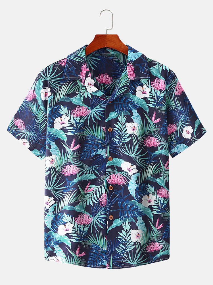 Decoration:ButtonFit Type:Regular FitMaterial:PolyesterNeckline:LapelPattern Type:Floral,TropicalScene:Leisure,Beach,CasualSeason:Spring,SummerSize:XXL,L,XL,MSleeve:Short SleeveStyle:Casual,Hawaii StyleThickness:Thin