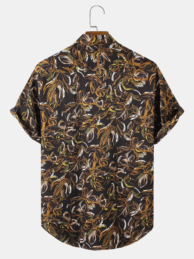 Mens Tropical Flower Print Holiday Casual Shirts – Black S