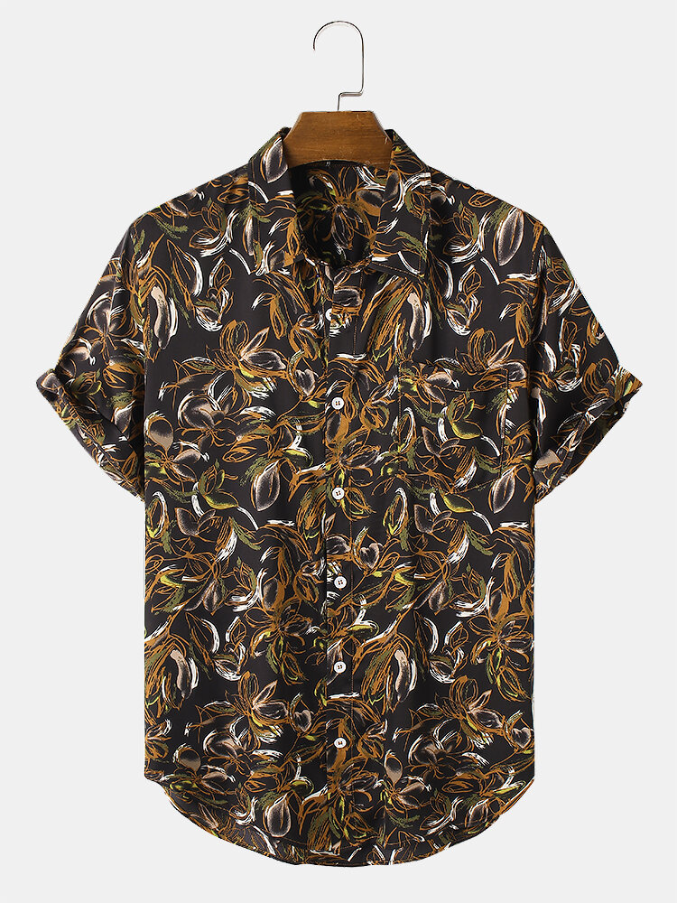 Decoration:Flowers,Pocket,ButtonFit Type:Regular FitMaterial:PolyesterNeckline:LapelPattern Type:Tropical,PlantsScene:Leisure,Home,CasualSeason:SummerSize:XXL,L,S,XL,MSleeve:Short SleeveStyle:Casual,Hawaii StyleThickness:Regular