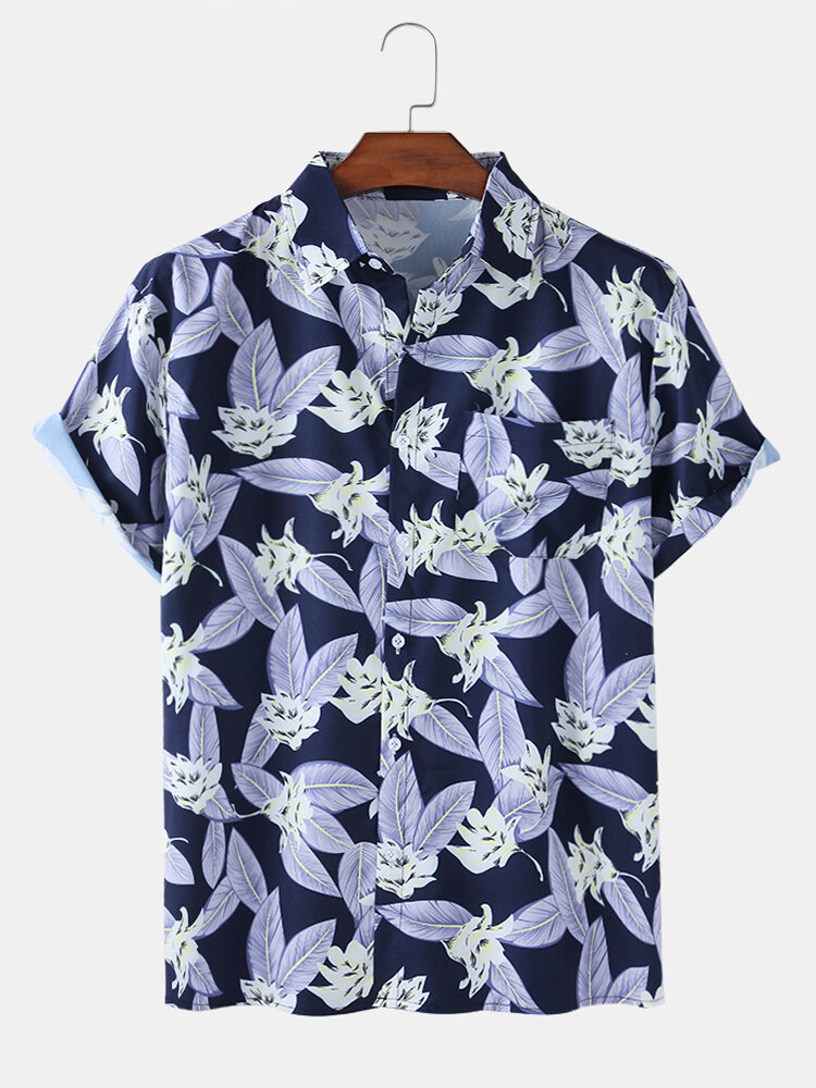 Description:Decoration:PocketFit Type:Regular FitMaterial:OtherNeckline:LapelPattern Type:Ditsy Floral,PlantsScene:Leisure,Home,Beach,CasualSeason:SummerSleeve:Short SleeveStyle:Casual,Hawaii Style