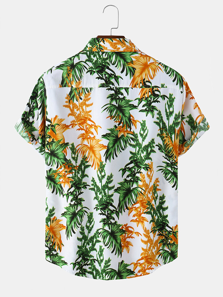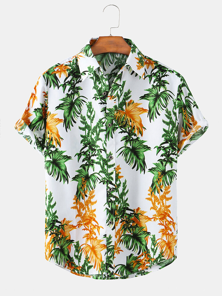 Description:Fit Type:Regular FitMaterial:PolyesterNeckline:LapelPattern Type:Tropical,PlantsScene:Leisure,Home,Beach,CasualSeason:SummerSize:XS,L,S,XL,MSleeve:Short SleeveStyle:Casual,Hawaii Style