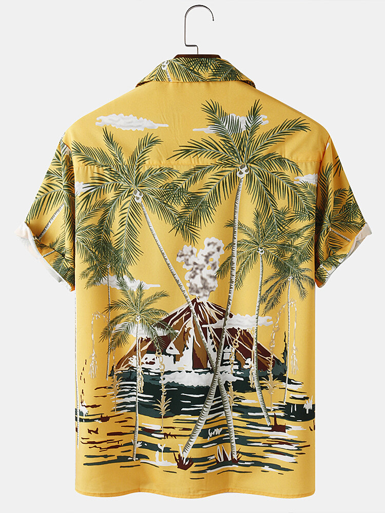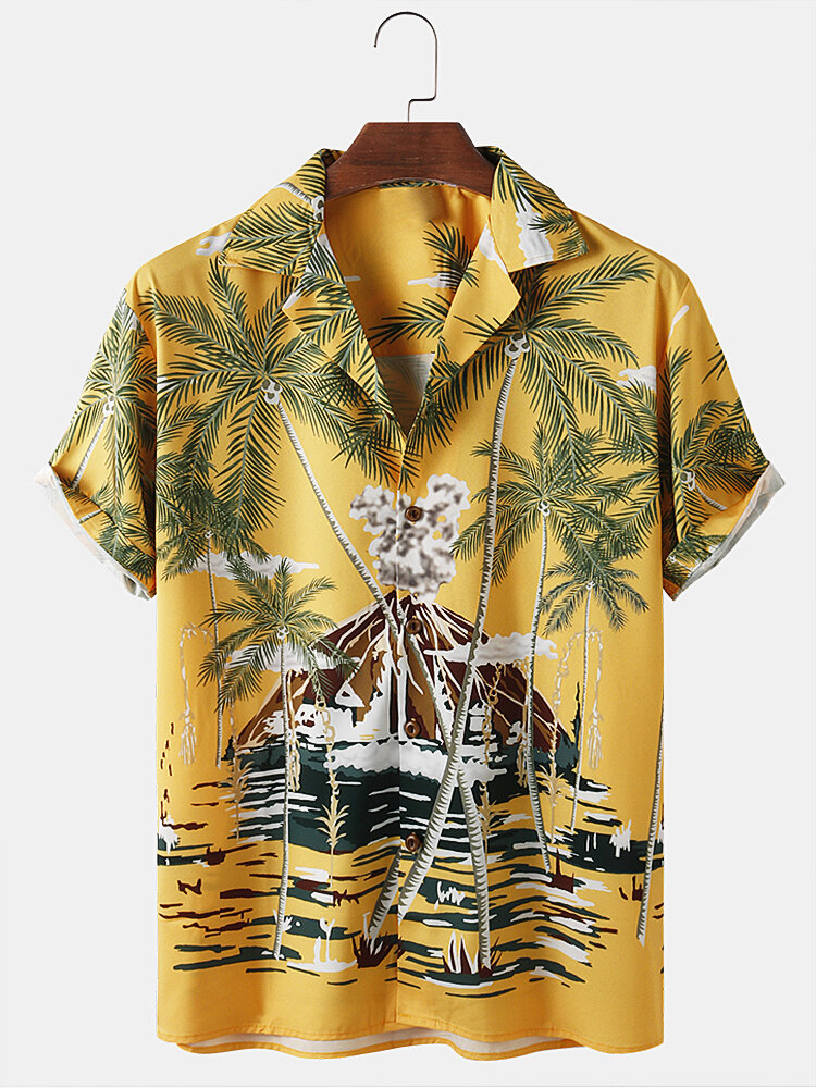 Description:Decoration:ButtonFit Type:Loose FitMaterial:PolyesterNeckline:Revere CollarPattern Type:Tropical,PlantsScene:Leisure,Beach,CasualSeason:Spring,SummerSize:L,S,XL,MSleeve:Short SleeveStyle:Casual
