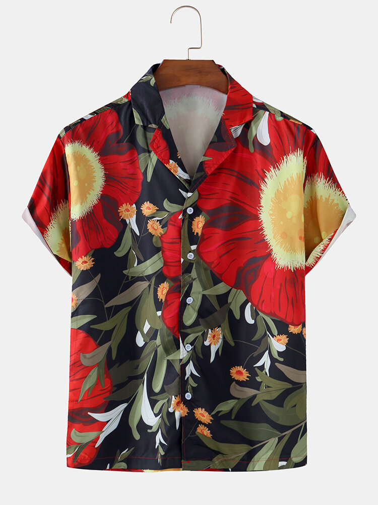 Description:Fit Type:Regular FitMaterial:PolyesterNeckline:LapelPattern Type:Ditsy Floral,TropicalScene:Leisure,Home,Beach,CasualSeason:SummerSize:XS,L,S,MSleeve:Short SleeveStyle:Casual,Hawaii Style
