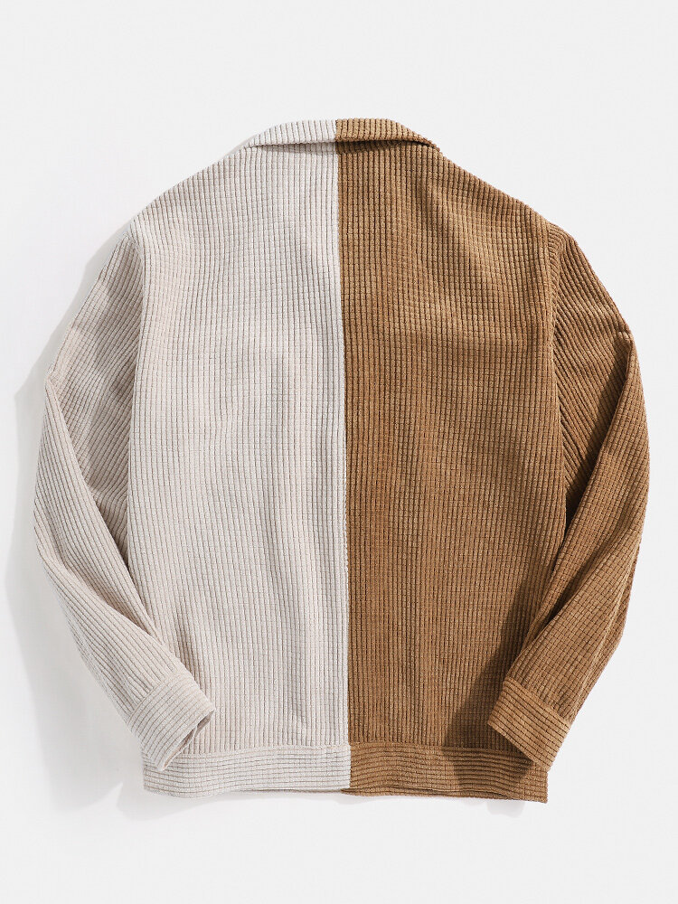 Mens Two Tone Patchwork Chest Double Pocket Texture Long Sleeve Overshirt – L Beige