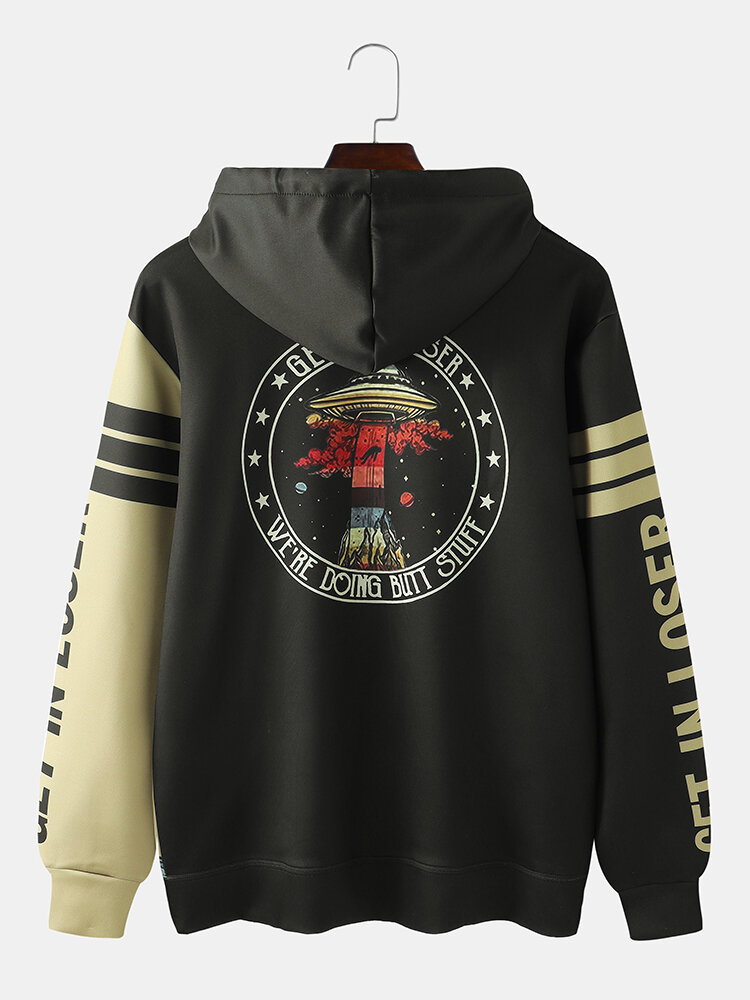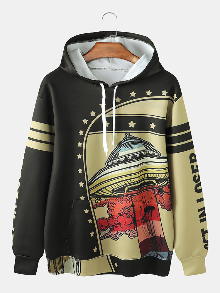 Mens UFO Planet Graffiti Print Kangaroo Pocket Design Hoodies – Graffiti 2 L