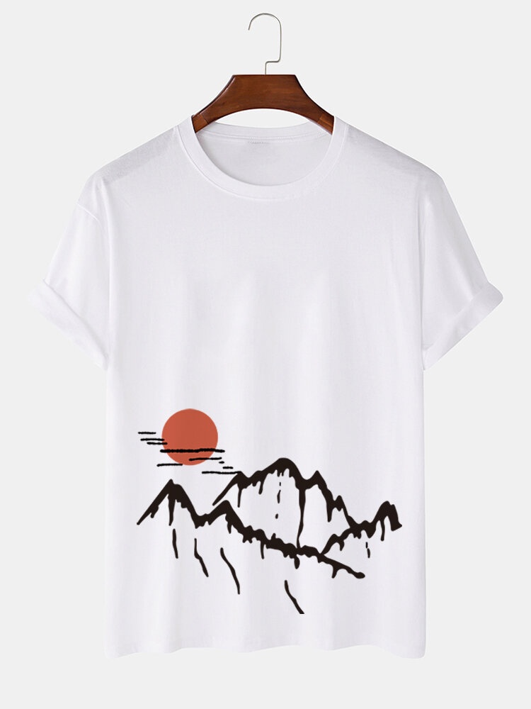 Description:Fit Type:Regular FitMaterial:CottonNeckline:Round NeckPattern Type:LandscapeScene:Leisure,Home,CasualSeason:Spring,SummerSize:M,L,S,XLSleeve:Short SleeveStyle:CasualThickness:Regular