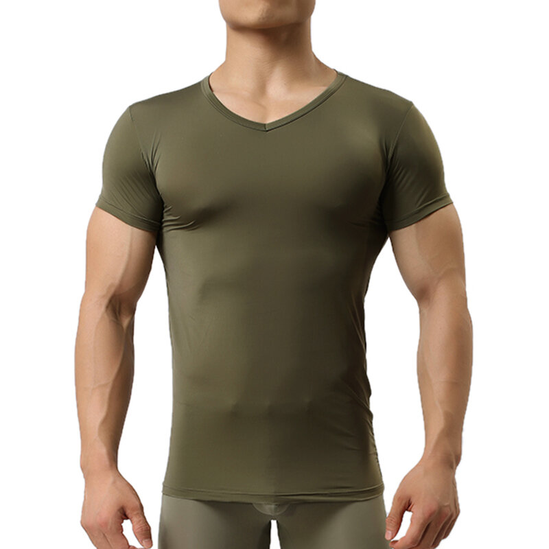 Men’s V Neck Gym Sport Muscle Slim Fit Tee Casual Short Sleeve Tops T-shirt 2019 – L Army