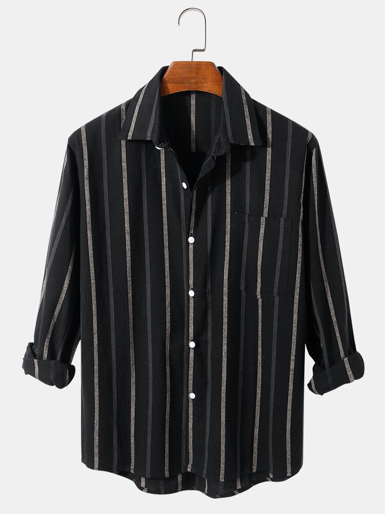 Description:Decoration:Pocket,ButtonFit Type:Regular FitMaterial:CottonNeckline:LapelPattern Type:StripedScene:Leisure,CasualSeason:Spring,AutumnSize:L,S,XL,MSleeve:Long SleeveStyle:CasualThickness:Regular