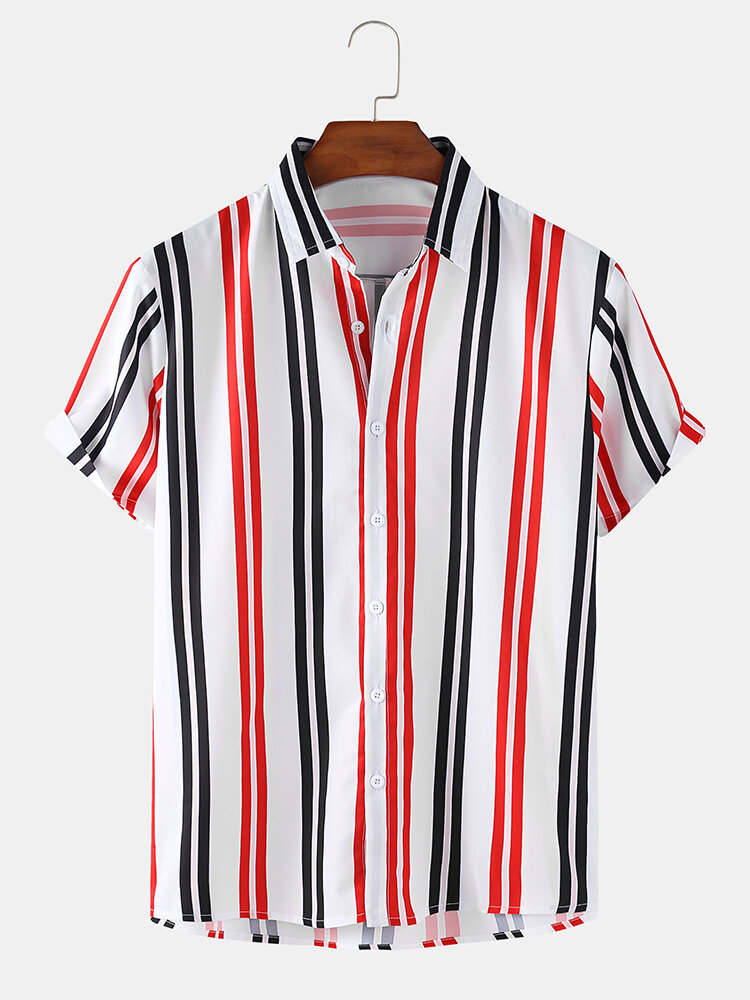 Decoration:ButtonFit Type:Regular Fit,Loose FitMaterial:Polyester,CottonNeckline:LapelPattern Type:StripedScene:Leisure,CasualSeason:Spring,SummerSize:XXL,S,L,XL,MSleeve:Short SleeveStyle:Casual