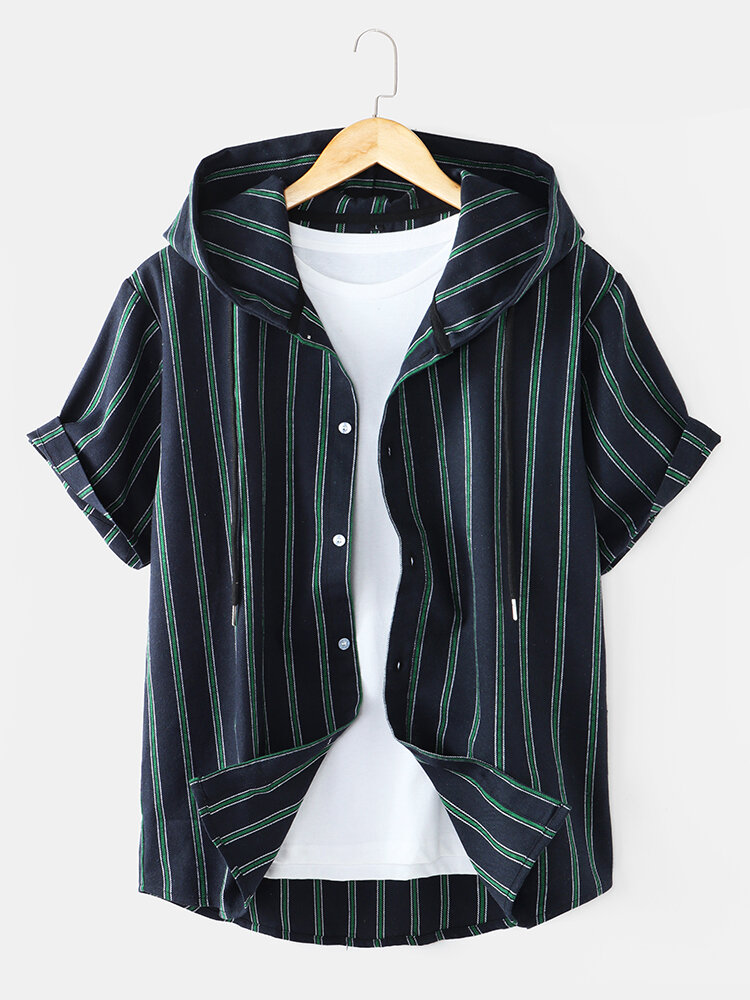Decoration:Hood,ButtonFit Type:Regular FitMaterial:PolyesterNeckline:HoodedPattern Type:StripedScene:Leisure,CasualSeason:Spring,SummerSize:XXL,L,S,XL,MSleeve:Short SleeveStyle:CasualThickness:Regular