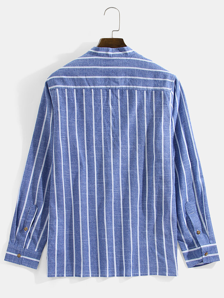 Brand:ChArmkpRDecoration:ButtonFit Type:Regular FitMaterial:Cotton,PolyesterNeckline:Stand CollarPattern Type:StripedScene:Leisure,CasualSeason:Spring,AutumnSize:XXL,L,XL,S,MSleeve:Long SleeveStyle:CasualThickness:Regular