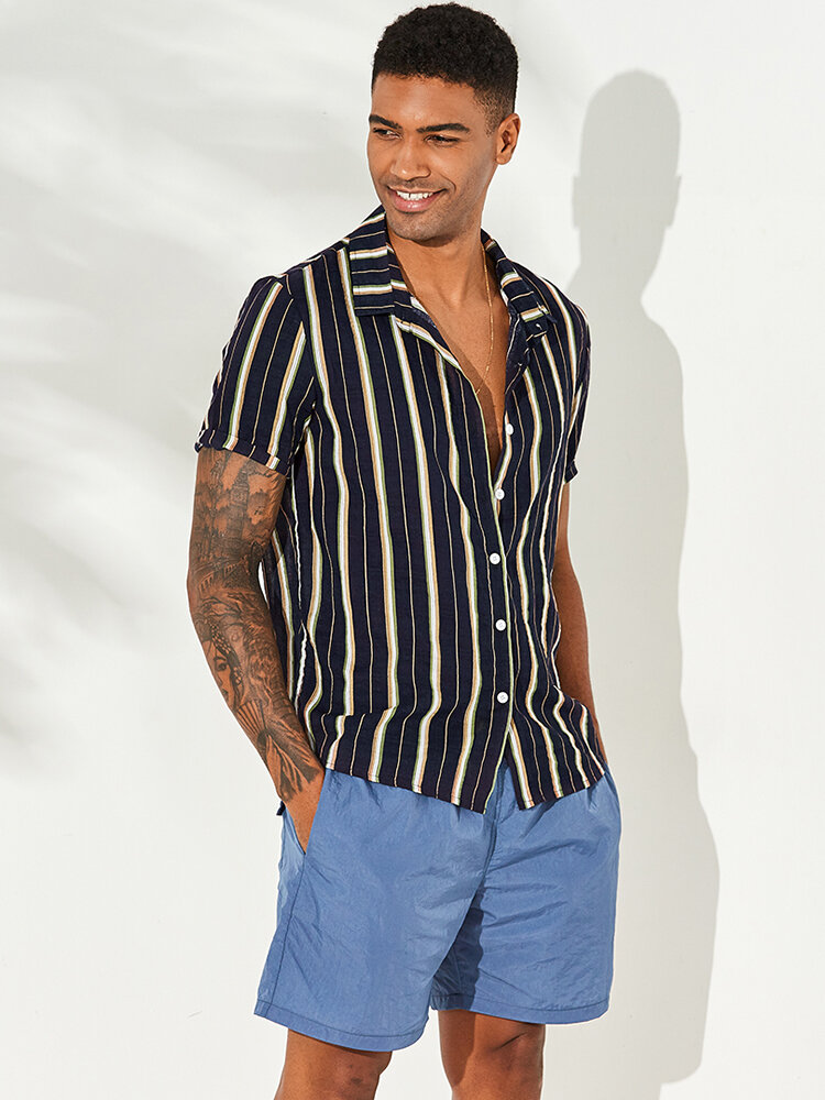 Mens Vertical Striped Summer Short Sleeve Fashion Shirts – 3XL Navy