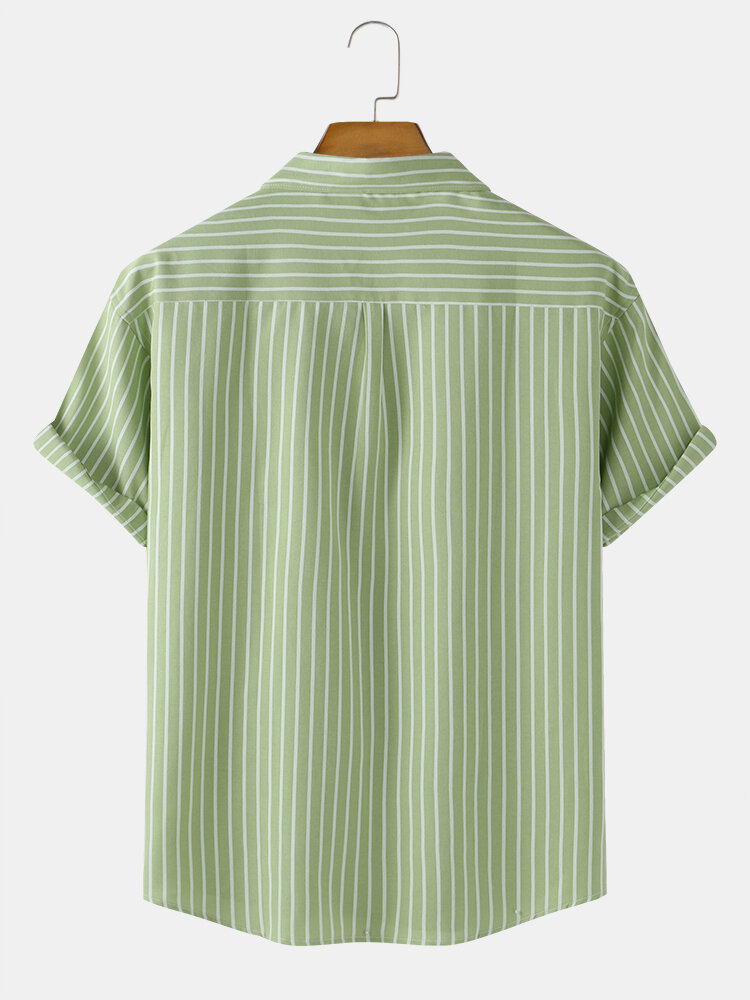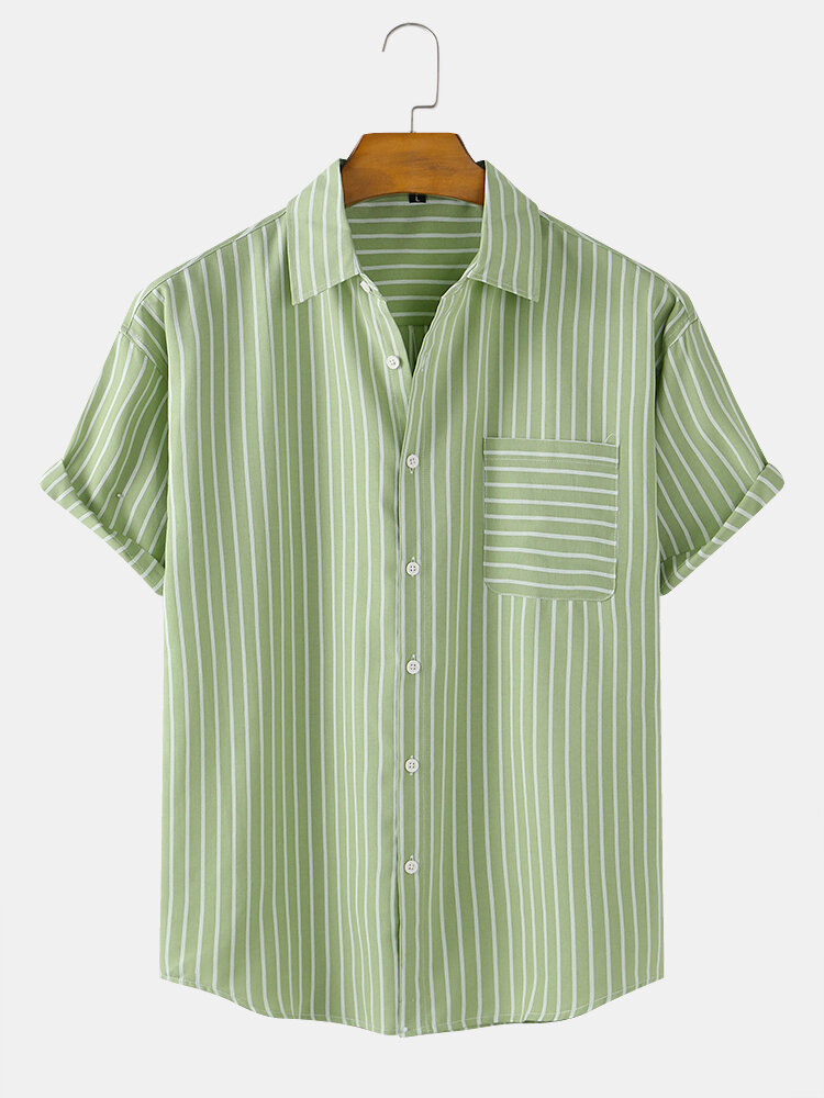 Description:Decoration:PocketFit Type:Regular FitMaterial:CottonNeckline:LapelPattern Type:StripedScene:Leisure,Home,CasualSeason:SummerSize:XXL,S,L,XL,MSleeve:Short SleeveStyle:Casual,Hawaii Style