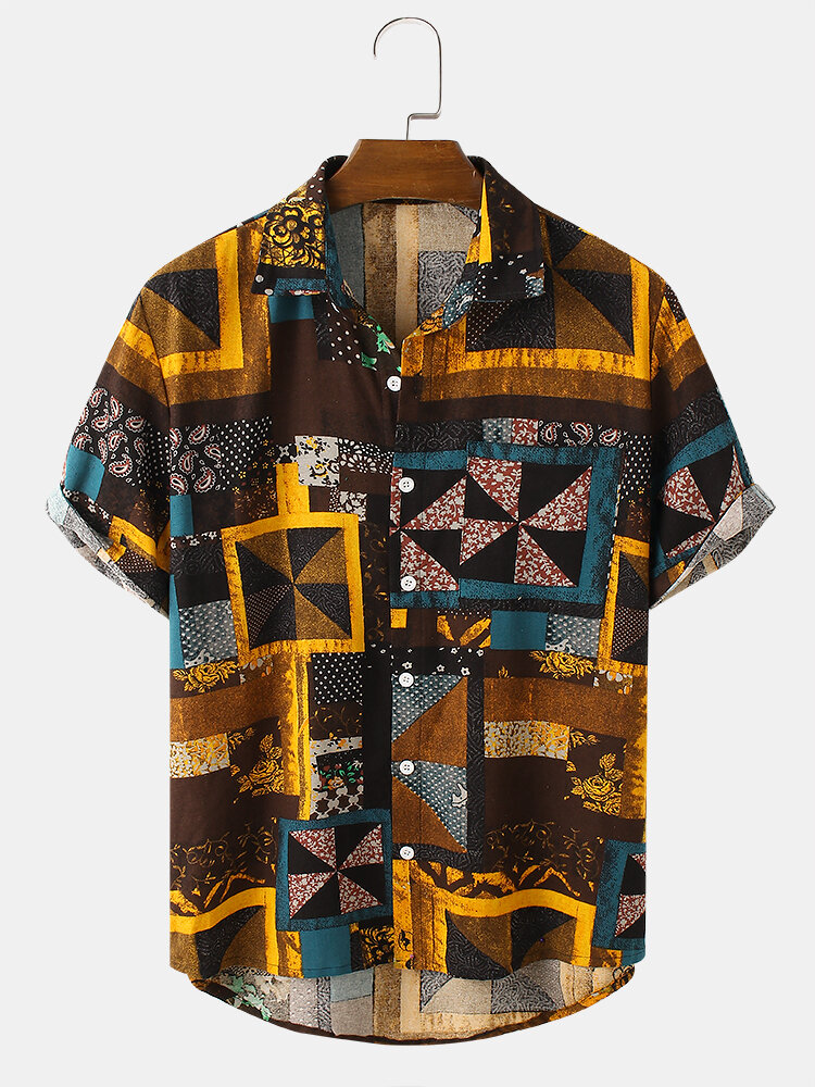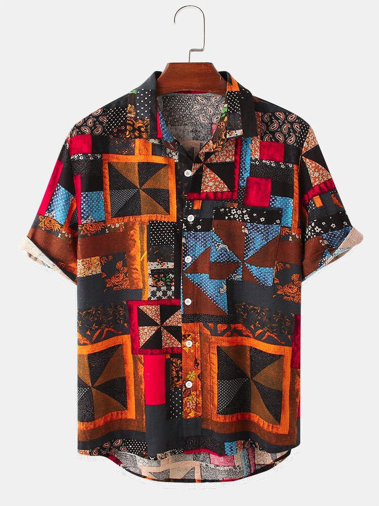 Brand:ChArmkpRDecoration:Pocket,Button,PatternFit Type:Regular FitMaterial:CottonNeckline:LapelPattern Type:Floral,GeometricScene:Leisure,Home,Beach,CasualSeason:SummerSize:XXL,L,S,XL,MSleeve:Short SleeveStyle:Vintage,Casual,Hawaii StyleThickness:Regular