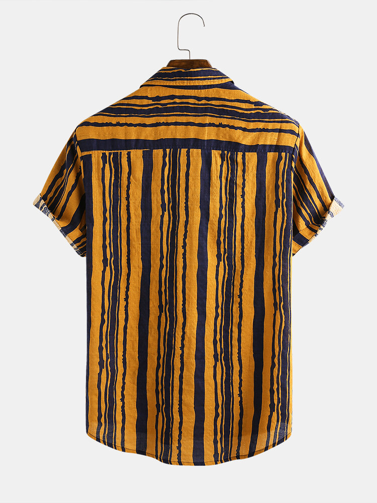 Mens Vintage 100% Cotton Breathable Stripe Style Casual Shirts – XL Yellow