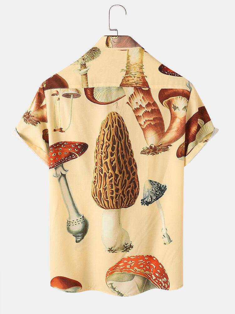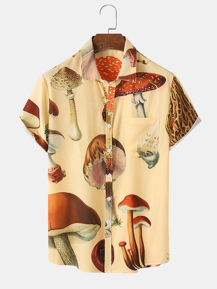 Mens Vintage 3D Mushroom Print Button Community Spirit Thin Shirt – Apricot S