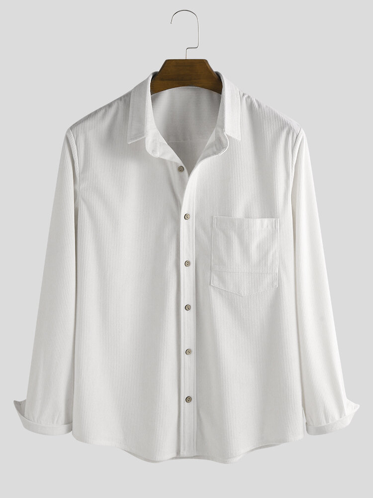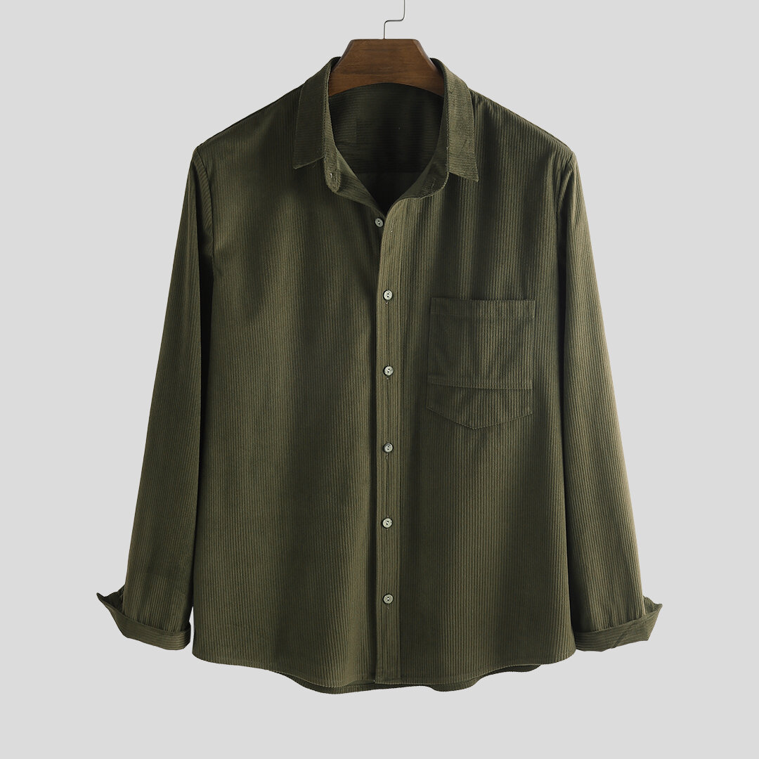 Item Type: Shirts Pattern Type: Solid Color Gender: Men Fit Type: FitStyle: Casual,Fashion Thickness: RegularCollar: Turn Down Collar Season: Spring, AutumnDecorations:Buttons PocketMaterial: Polyester,CorduroySleeve Length: Long SleeveColor: Brown,Green,WhiteCuff Type: Shirt Sleeve Occasion: Leisure,Home,Daylife Package includes