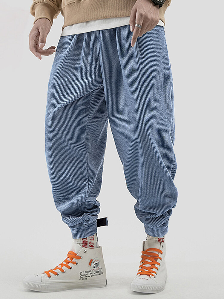 Item Type: PantsFit Type: RegularClosure Type: Elastic WaistGender: MenDecoration: Solid ColorMaterial: Polyester,Polyamide Thickness: ThickStyle: Casual,Fashion,Vintage Season: Spring,Autumn,WinterWaist Type: Mid Rise Color: Blue,Khaki,GreenPants Type: Straight-leg PantsLength: Long Occasion: Leisure,Daylife Package includes: