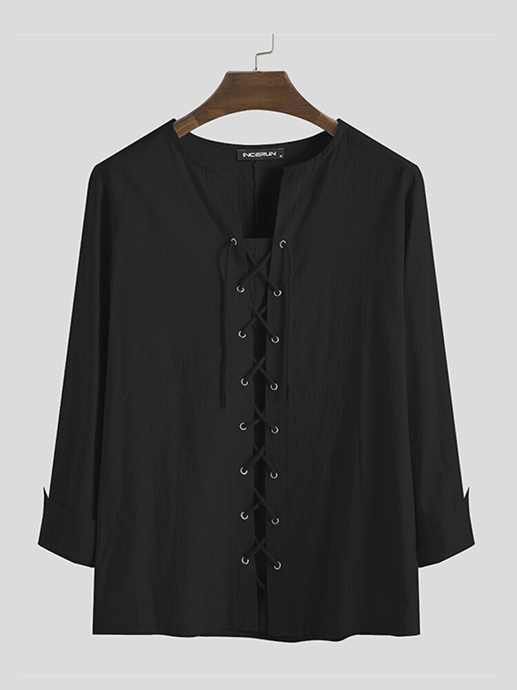 Item Type: T-ShirtsPattern Type: Solid ColorGender: Men Fit Type: FitStyle: Casual,Fashion Thickness: RegularCollar: Stand CollarSeason: Summer,Spring,AutumnDecorations: DrawstringMaterial: CottonSleeve Length: Short SleeveColor: Khaki,White,BlackCuff Type: Shirt Sleeve Occasion: Leisure,Home,Daylife Package includes