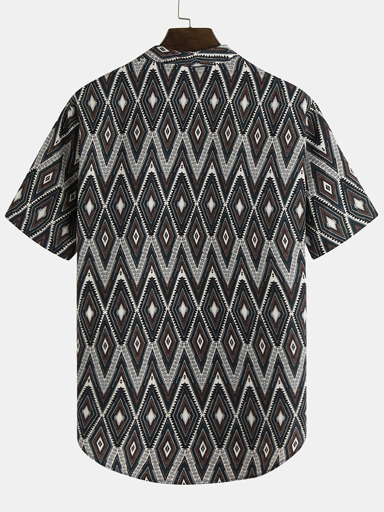 Mens Vintage Enthnic Geometry Printed Loose Casual Shirts – XL Black