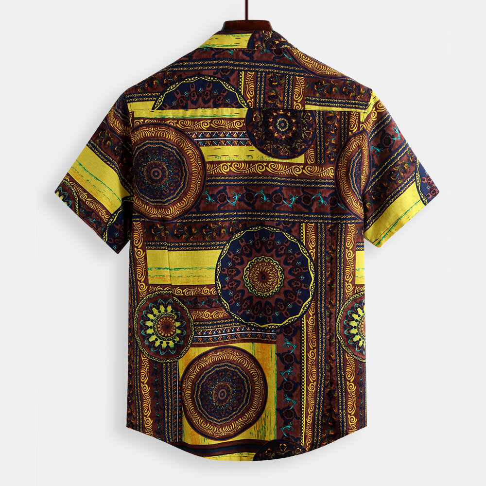 Mens Vintage Fashion Ethnic Pattern Printing Cotton Shirts – XL Brown