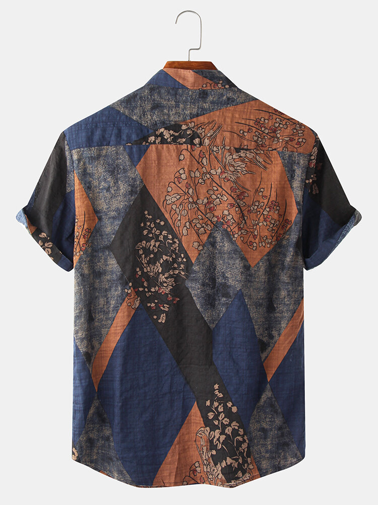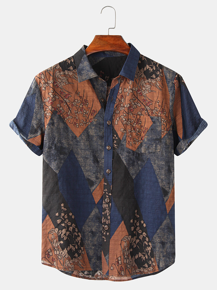 Decoration:Pocket,ButtonFit Type:Regular FitMaterial:Cotton,RayonNeckline:LapelPattern Type:Floral,GeometricScene:Leisure,CasualSeason:Spring,SummerSize:XXL,L,S,XL,MSleeve:Short SleeveStyle:Vintage,CasualThickness:Regular