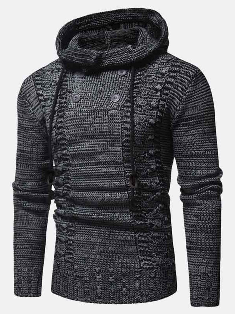 Mens Vintage Half Double Breasted Zipper Knitting Warm Hooded Sweaters – Black S