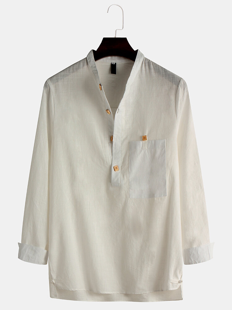 Mens Vintage Henley Collar Buttons Long Sleeve T-Shirts – 3XL Black