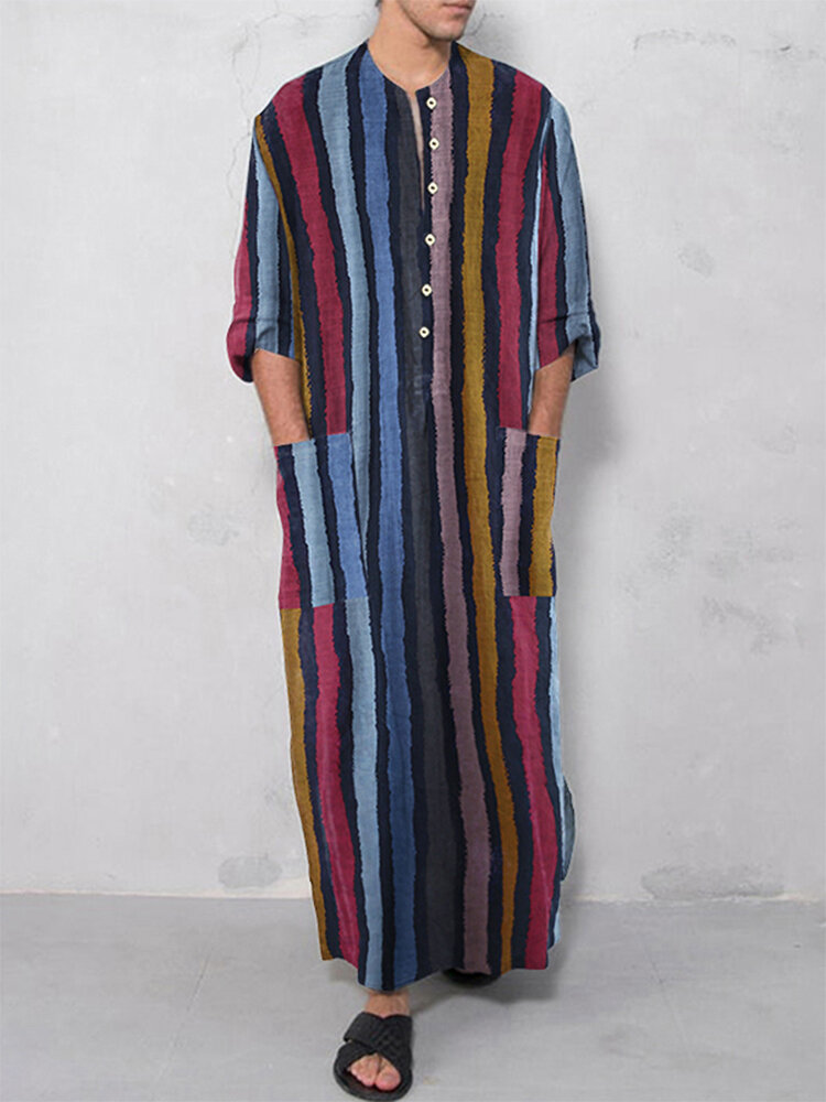 Mens Vintage Loose Kaftan Tops Men Long Robe Loungewear Casual T-Shirts – Red S