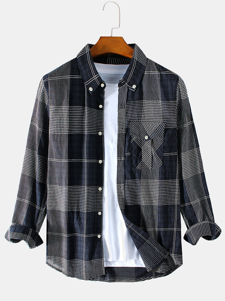 Brand:ChArmkpRDecoration:Pocket,ButtonElasticity:Slight ElasticFit Type:Regular FitMaterial:PolyesterNeckline:LapelPattern Type:PlaidScene:Leisure,CasualSeason:Spring,Autumn,WinterSleeve:Long SleeveStyle:Vintage,CasualThickness:Regular