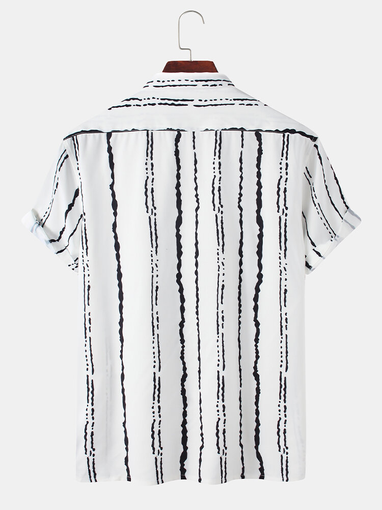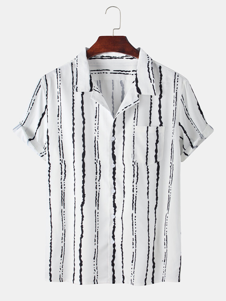 Description:Item Type: ShirtsPattern Type: StripeGender: MenFit Type: FitStyle: Casual,FashionThickness: RegularCollar: Turn Down CollarSeason: SummerDecorations: PocketMaterial: 100% PolyesterSleeve Length: Short SleeveColor: WhiteCuff Type: Shirt SleeveOccasion: Leisure,Home,Daylife