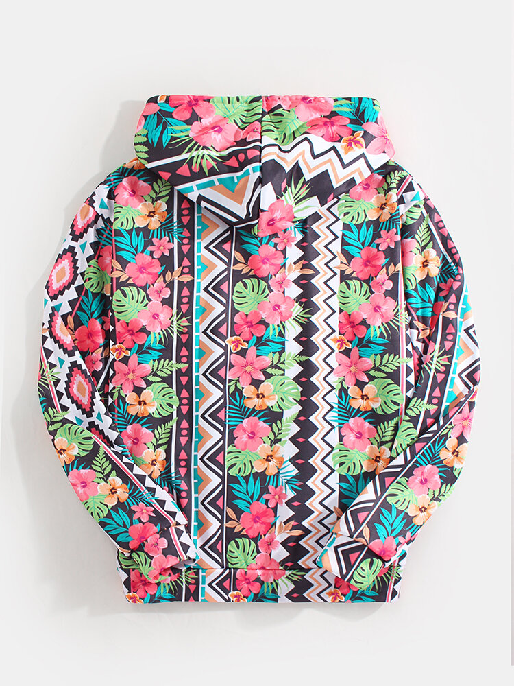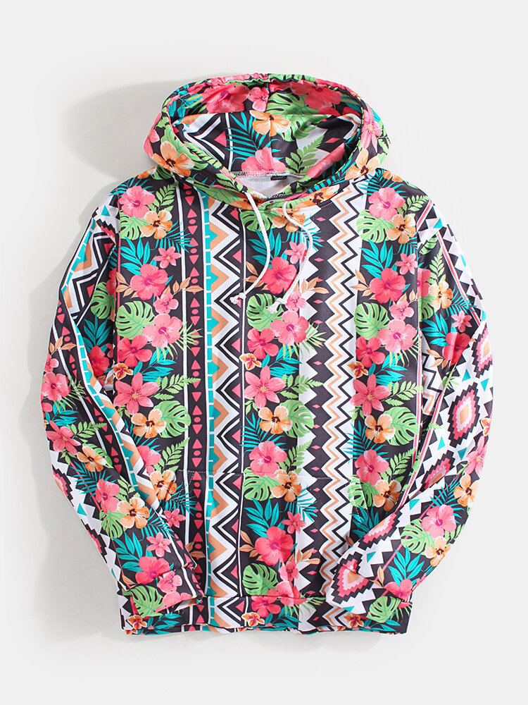 Mens Vintage Style Floral Print Drawstring Hoodies With Kangaroo Pocket – M #01