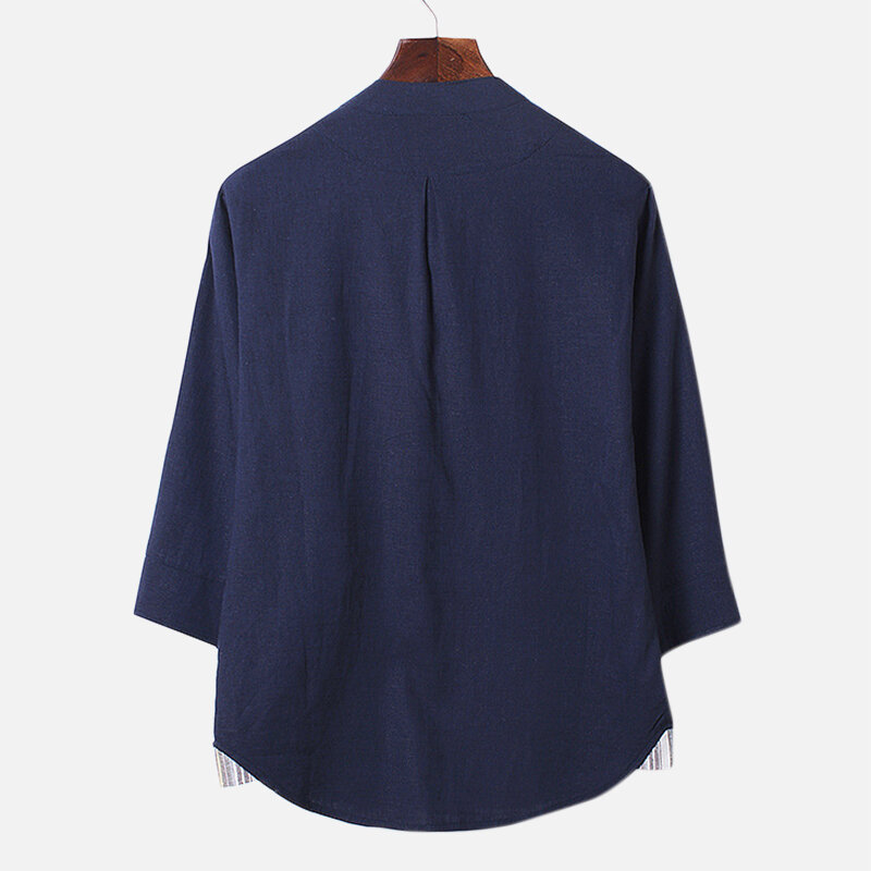 Mens Vintage Traditional Chinese Style Linen Cotton Shirts Loose Tops – M Navy