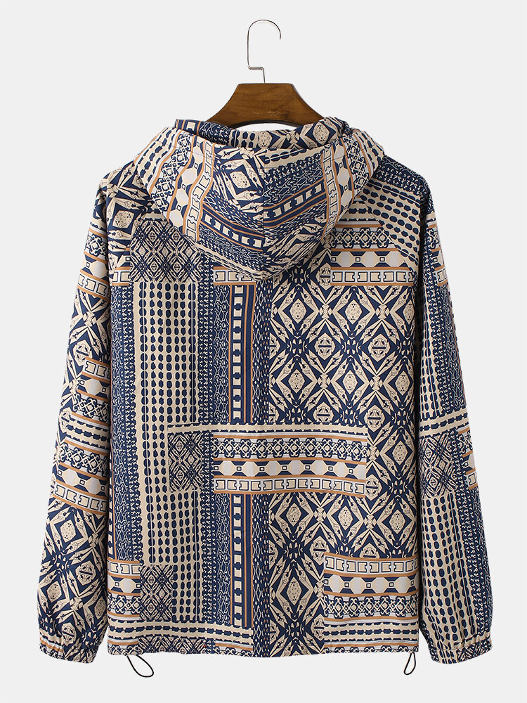 Mens Vintage Tribal Pattern Print Drawstrin Hem Pullover Hoodie Portable Windbreaker Jacket – Navy S