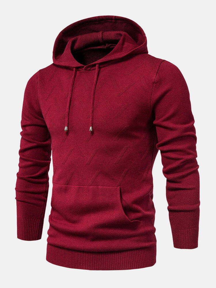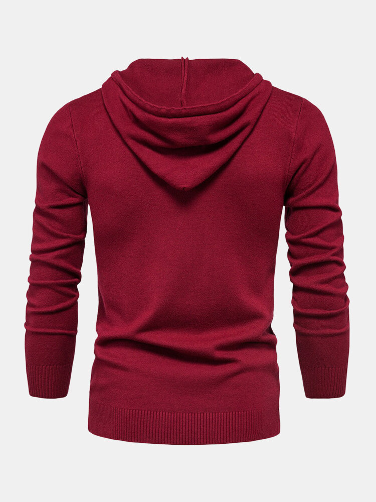 Mens Warm Simple Solid Color Knitted Hooded Sweaters With Pocket – Red L