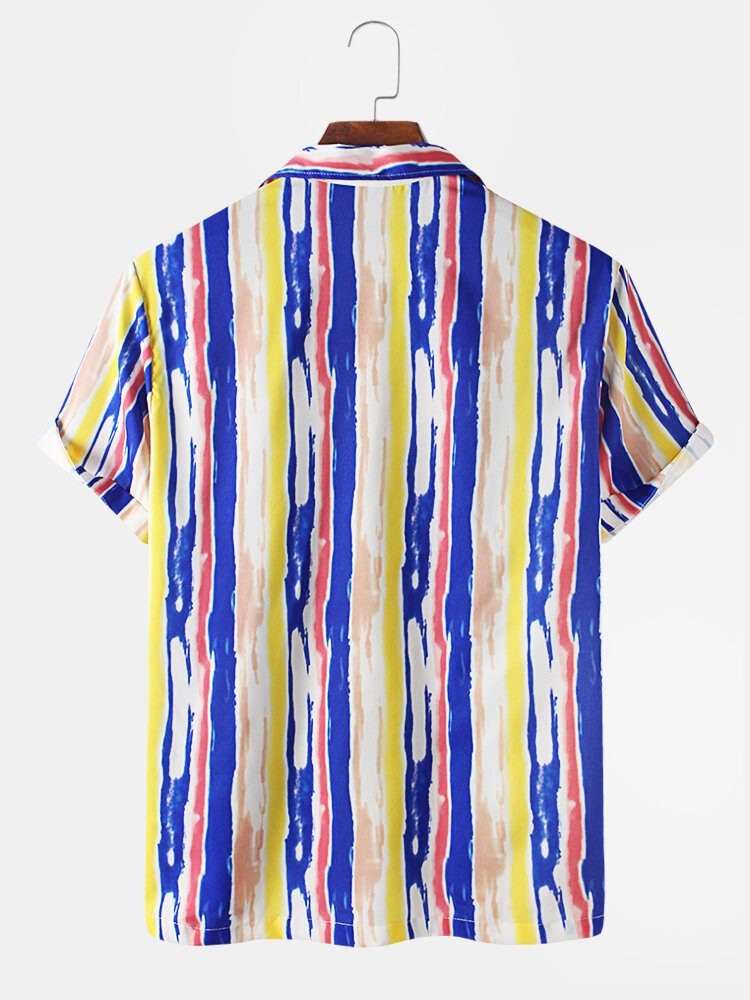 Fit Type:Regular FitMaterial:PolyesterNeckline:LapelPattern Type:StripedScene:Leisure,CasualSeason:SummerSize:XXL,L,S,XL,MSleeve:Short SleeveStyle:CasualPackage included:1*Shirt