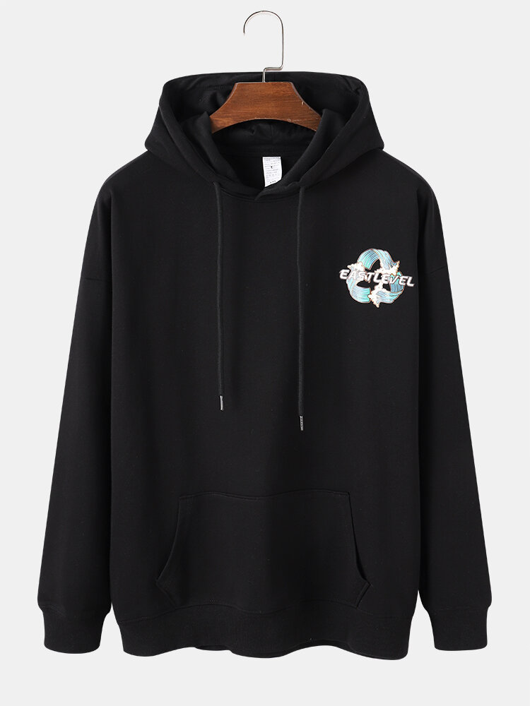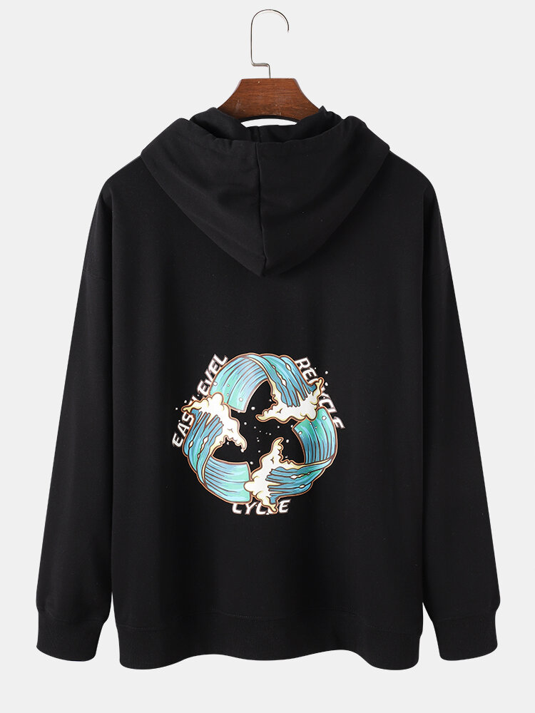 Mens Wave Print Kangaroo Pocket Long Sleeve Ethnic Style Drawstring Hoodies – White 2XL