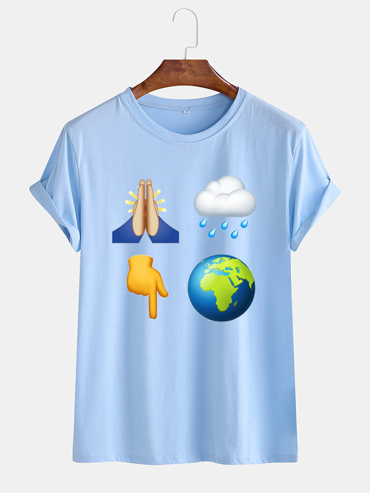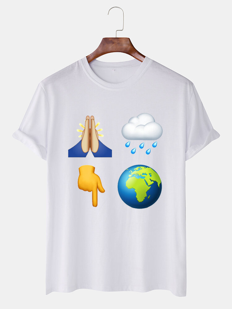 Mens Weather Print Round Neck Casual Short Sleeve T-Shirts – White M