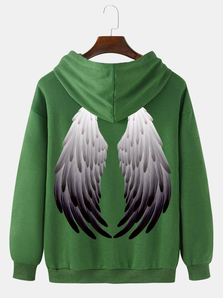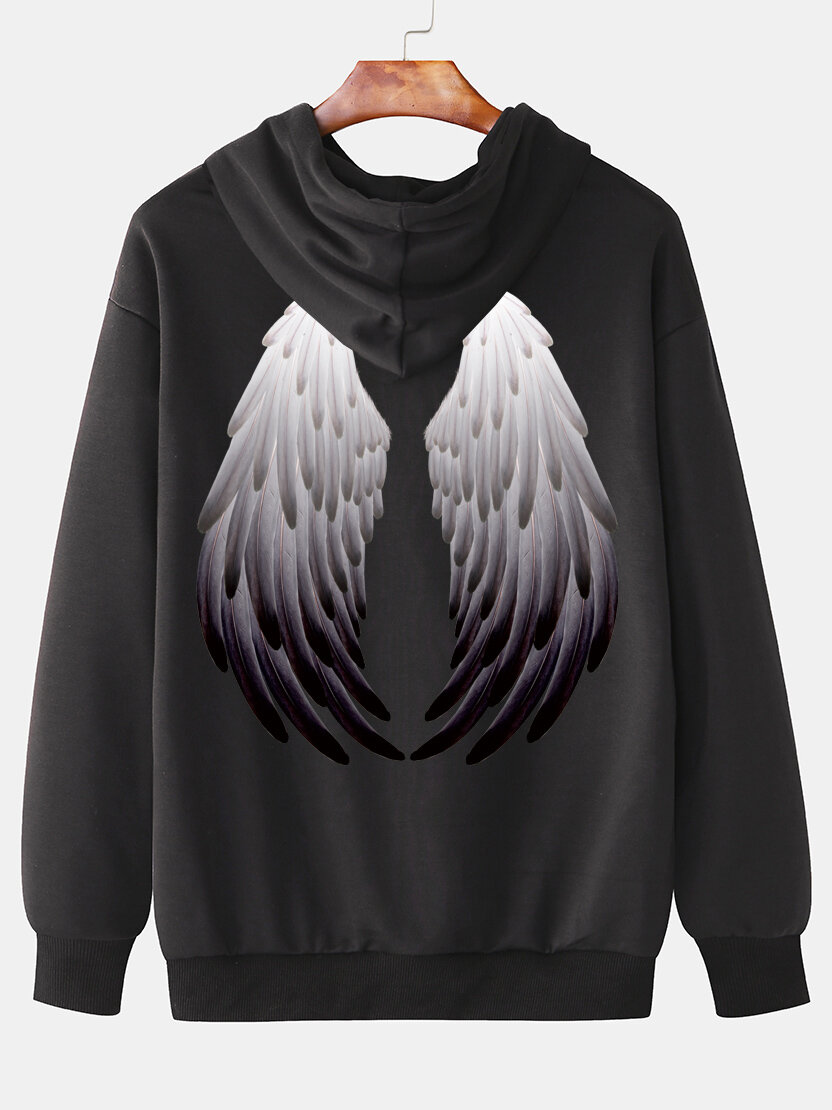 Mens Wing Pattern Letter Print Drop Shoulder Long Sleeve Deisgn Hoodies – Black S