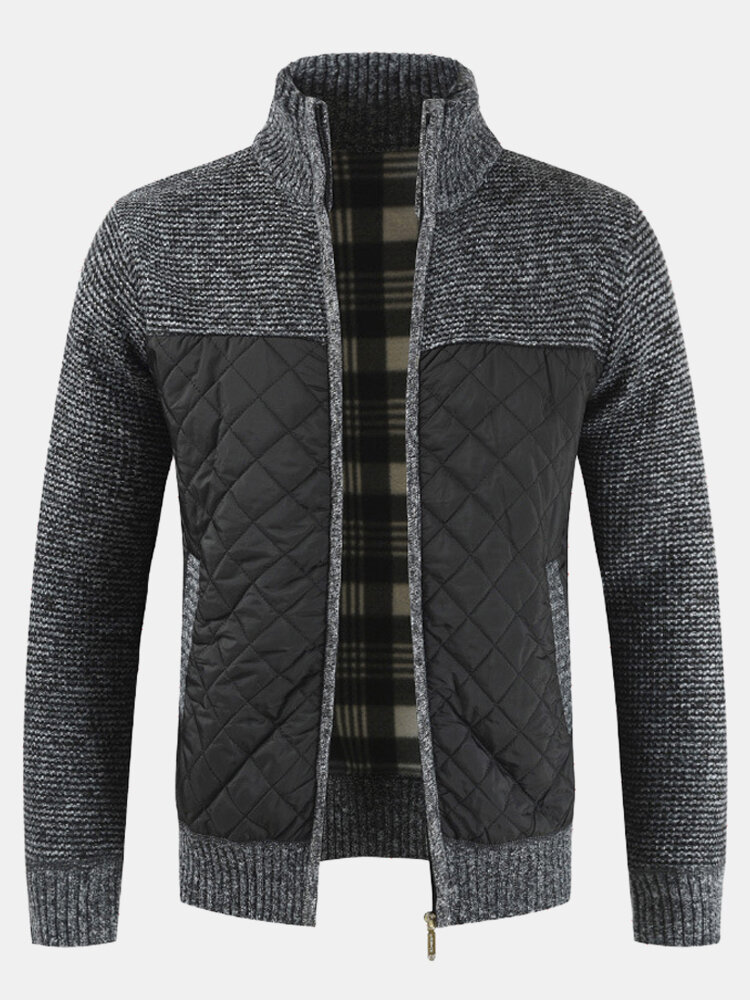 Mens Winter Casual Fleece Thick Stitching Knitted Coats Stand Collar Warm Jacket – S Black