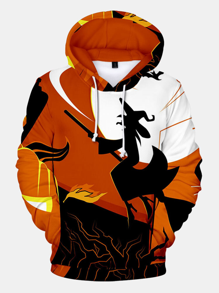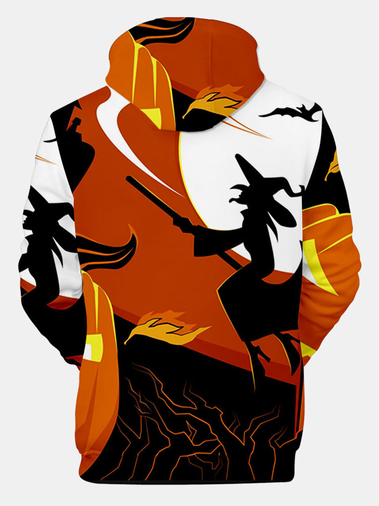 Mens Witch Pattern Cartoon Pockets Hoodies – Orange M