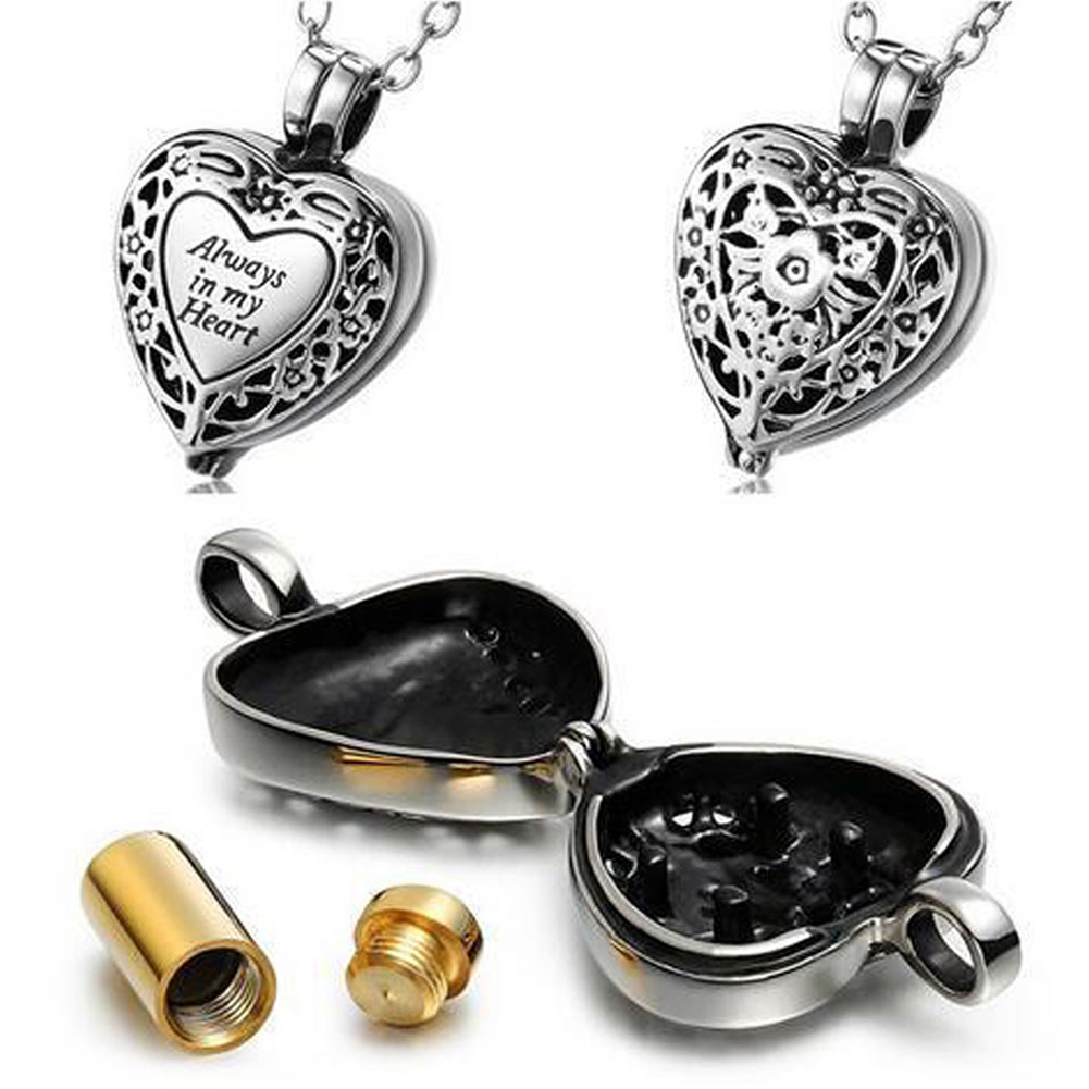 Steel Jewelry Cylinder Memorial Urn Pendant Cremation Necklace Ash Case Holder