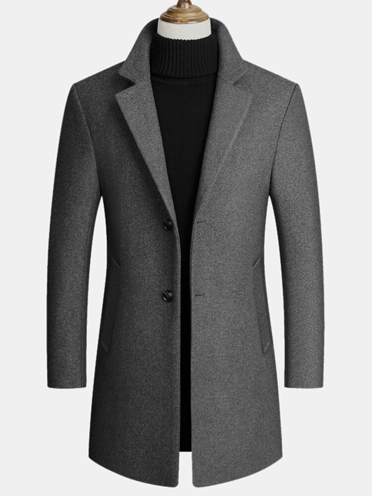 Mens Wool Blends Mid-Length Coats Business Casual Wool Trench Coats – Black XS