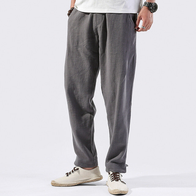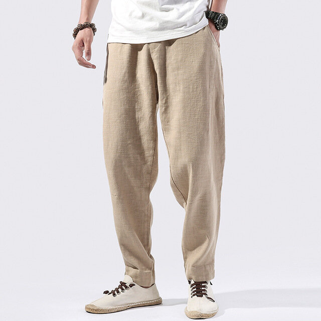 Men’s Youth Solid Color Retro Cotton And Linen Harem Pants – 32 Black